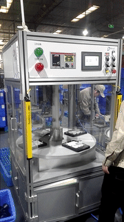 设备采用转盘式多工位设计,不同工位分别检测 工件的差压和流量特性,另有合格件打标功能